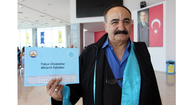 Edirne'de 1979'da Trakya Üniversitesi Mimarlık Fakültesi'ne giren, 1980 darbesinin ardından 1982'de okuldan atılan Mehmet Özdemir (65), 40 yıl sonra mezuniyet mutluluğu yaşadı. Öğrenci affıyla 2018-2019 akademik yılında üniversiteye dönen Özdemir, gençlerle eğitim aldığını belirterek, "Aftan yararlanıp gelince sıfırdan başladım. 2018 girişlilerle aynı statüye dahil bir öğrenci olarak başladım. Mimarlık, üniversitenin en zor bölümlerinden biri ve yüzde 90 devam mecburiyeti olan bir bölüm" dedi.