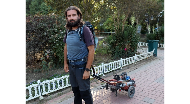 Parktaki çocuklarla sohbet edip, yürüyüş hakkında bilgi veren Murat Etemoğlu, 'Paris'ten İstanbul'a Çevre ve Barış Yürüyüşü' başlattığını ve yolculuk boyunca uyku ve molalar dışında yürüyüşüne kesintisiz bir şekilde devam ettiğini söyledi. Fransa, İsviçre, İtalya, Hırvatistan, Bosna Hersek, Karadağ, Arnavutluk, Kosova, Kuzey Makedonya ve Yunanistan gibi birçok ülkeden geçtiğini ifade eden Etemoğlu, şu an Türkiye'ye ulaştığını belirtti. Etemoğlu, yol boyunca atık toplamaya da özen göstererek, çevre bilincinin artmasına katkıda bulunmaya çalıştığını söyledi.