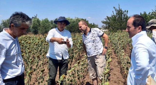 Tekirdağ'da İl Tarım ve Orman Müdürlüğü, aşırı sıcaklar nedeniyle ayçiçeğinde yaşanan verim kaybının tespiti için çalışma başlattı.