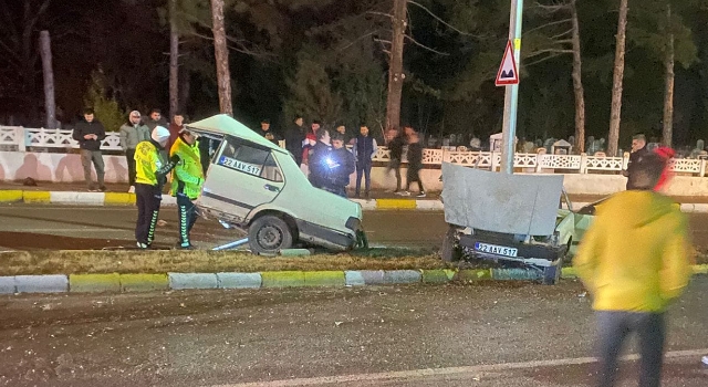 Aydınlatma direğine çarpıp ikiye bölünen otomobildeki 2 kişi ağır yaralandı
