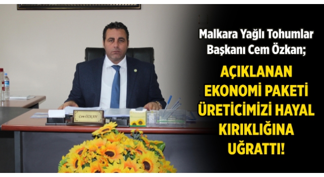Malkara Yağlı Tohumlar Başkanı Cem Özkan, Cumhurbaşkanımızın açıkladığı ekonomi paketi üreticilerimizi hayal kırıklığına uğrattı, dedi.