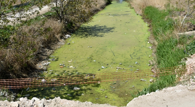 Bayır Deresi, kirlilikten yeşile büründü, üzeri çöplerle kaplandı