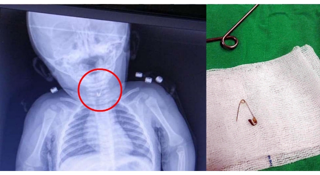 Bebeğin yutup yemek borusuna takılan ucu açık çengelli iğne hastanede yapılan cerrahi operasyonla başarıyla alındı. Gastroenterolojik cerrahi uzmanı Dr. İhsan Gündüz ile anestezi uzmanı Dr. İbrahim Çetin'in yaptığı operasyon sonucu bebek sağlığına kavuştu.
