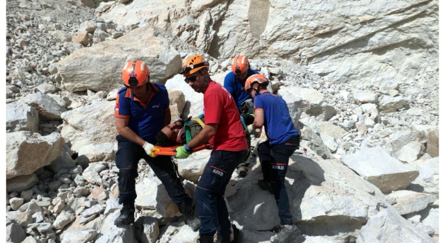 Bulgaristan'a geçerken taş ocağına düşüp yaralanan göçmen, vinçle çıkarıldı