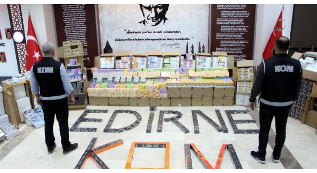 Edirne Emniyet Müdürlüğü Kaçakçılık ve Organize Suçlarla Mücadele Müdürlüğü ekipleri, Bulgaristan'dan ülkeye giriş yapan bir TIR'da gümrük kaçağı malzeme olduğu bilgisini aldı. Önceden plakası alınarak takibe alınan TIR, ülkeye giriş yaptıktan sonra, Edirne Gişeler mevkisinde durduruldu. Ekipler TIR'da yaptığı aramada gümrük kaçağı, 12 bin 300 adet elektronik sigara, 3 bin 600 adet elektronik sigara ateşleyicisi, 1 yüz 93 adet elektronik sigara kiti, 720 bin adet sigara filtresi, 625 adet elektronik sigara başlığı ile 1500 adet gözlük ele geçirildi. Ekipler ayrıca yaptığı aramalarda ülkede satışı yasak olan 1200 adet 'cinsiyet hormonu' ampul ilaç ele geçirdi.