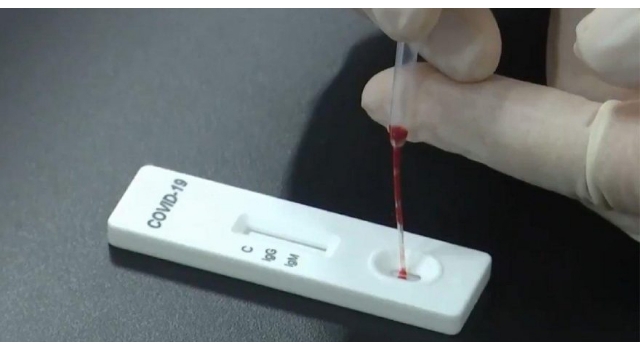Elçiliğin yer verdiği Xinhua ajansının haberine göre hastadan alınan kan örneği, hamilelik testine benzer bir çubuğun üzerine damlatılıyor. Çubuktaki gösterge, 15 dakika içinde sonucun pozitif ya da negatif olduğunu çizgiyle gösteriyor.