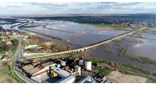 Ergene Nehri, taşarak çevresindeki tarım alanlarını sular altında bıraktı.