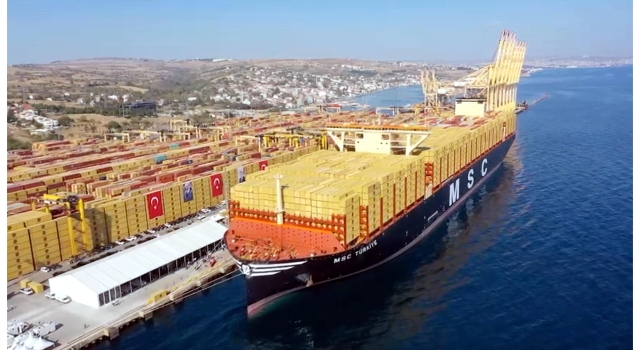 Dünyanın en büyük konteyner gemilerinden 'MSC Türkiye' Tekirdağ'da