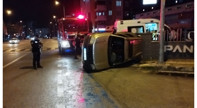 Duvara çarpıp devrilen cipin sürücüsü yaralandı
