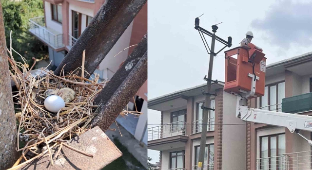 Elektrik direğindeki kumru yuvası nedeniyle çalışma ertelendi