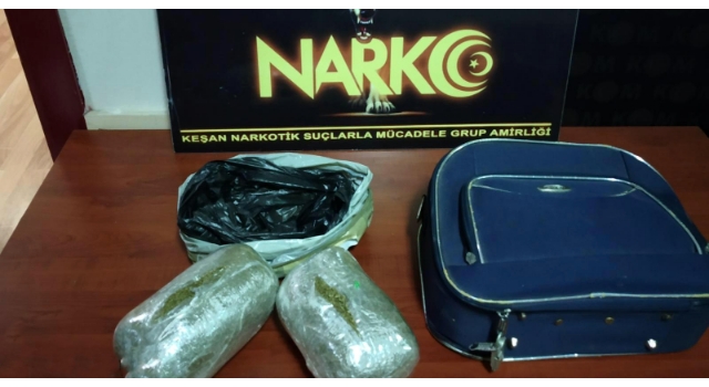 Enişte gittikten kısa süre sonra gelen C.K., kontrol ettiği valizi almadan evden ayrıldı. Eniştesi ile C.K.’nin daha önce uyuşturucu satışı yaptığını bilen K.Ç., durumdan şüphelenerek Keşan İlçe Emniyet Müdürlüğü’nü aradı. Polislerden valizin incelenmesini istedi. Adrese gelen polis ekipleri, valizi açtıklarında 982,47 gram bonzai ele geçirdi. C.K., gözaltına alınırken, ekipler M.İ.’yi yakalamak için çalışma başlattı.