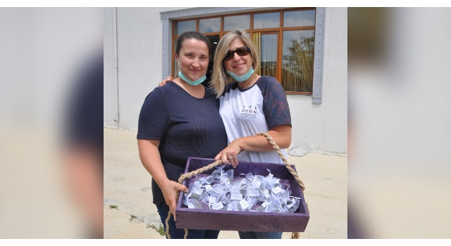 Girişimci kız kardeşler ilk lavanta hasadını muhtarlara dağıttı
