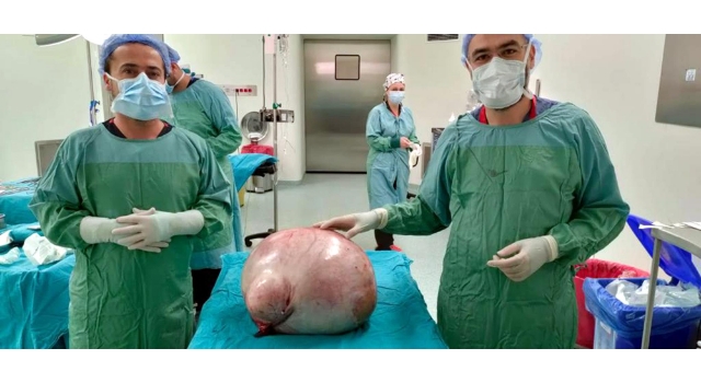 Op. Dr. Yüksel Beyaz da şunları söyledi: "15 yıllık cerrahım, ilk kez böyle bir kitle gördüm. Türkiye'de bu kadar büyük bir kitle çıkartıldığını görmedim. Dünyanın belki de en büyük kitlesi olabilir. Hasta için çok iyi bir ameliyat oldu. Açıkçası bizi biraz zorladı. Fakat hastanın iyi olması bizi de mutlu etti. Hasta da ameliyat sonrası şaşırdı. Nefes alamayan hasta, ameliyattan nefes alıp, rahat yürümeye başladı." Hastanın karnından çıkarılan kitlenin incelenmesi sürüyor. (DHA)