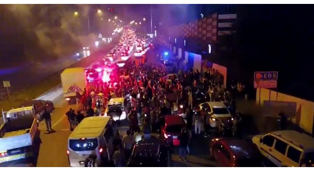 Nevzat Demir Tesisleri önündeki kutlamalar havadan görüntülendi.