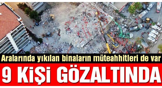 İzmir'in Seferihisar içesi açıklarında 6.9 büyüklüğündeki deprem sonrası aralarında yıkılan binaların müteahhitleri ile fenni mesullerinin de bulunduğu 9 kişi gözaltına alındı.