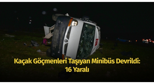 Kaçak göçmenleri taşıyan minibüs devrildi: 16 yaralı