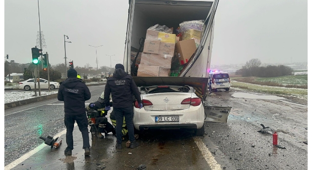 Tekirdağ'ın Ergene ilçesinde ışıklarda bekleyen kamyona arkadan çarpan otomobilin ehliyetsiz sürücüsü Kayra G. (17), hayatını kaybetti.