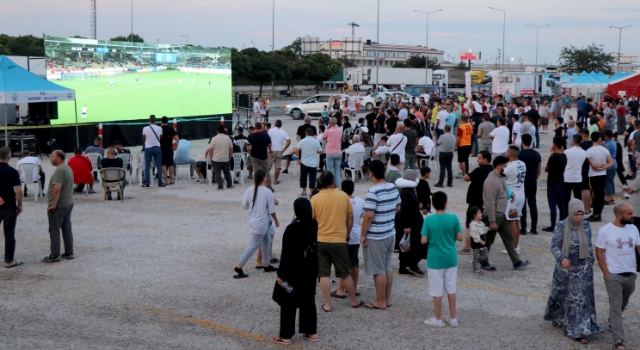 Kapıkule'de çıkış için sıra bekleyen gurbetçiler, dev ekrandan maç izledi