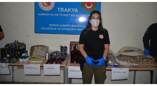 Ticaret Bakanlığı Trakya Dış Ticaret Gümrük Müdürlüğü Kapıkule Sınır Kapısı Gümrük Muhafaza ve Kaçakçılık Müdürlüğü ekipleri, bir TIR'da ve yolcu otobüsünde yapılan aramalarda 46 kilogram metamfetamin uyuşturucu madde ile bin 690 şişe hormon ilacı ele geçirdi. Ekipler diğer aramalarda da çok sayıda gözlük, kaçak içki, oto parça, elektronik ve kaçak eşya ele geçirdi. Ele geçirilen uyuşturucu, hormon ilacı ve kaçak eşyaların piyasa değerinin 28 milyon TL olduğu belirtildi.