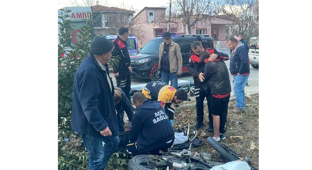Edirne'nin Keşan ilçesinde, otomobile çarpan motosikletin ehliyetsiz ve kasksız sürücüsü A.E.Ö. (17) ve arkasındaki kız arkadaşı N.S.D. (16) yaralandı. Yaralı sürücü, sağlık ekiplerinin kız arkadaşına müdahalesi sırasında polis memuruna sarılarak, gözyaşı döktü.