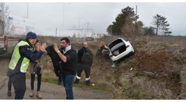 Edirne'de, şarampole düşen otomobilde yaralanan Nuri Ç., tedavi gördüğü ambulanstaki sağlık görevlileriyle tartışıp, kanlar içerisinde aracı terk etti. Jandarma ekiplerinin sakinleştirdiği Nuri Ç., hastaneye götürülerek tedaviye alındı.