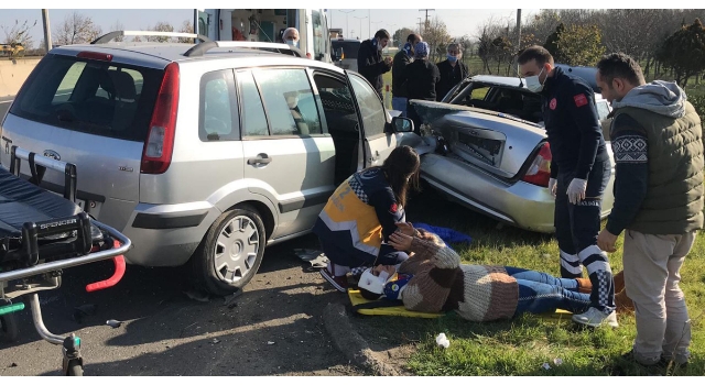 Tekirdağ'ın Çorlu ilçesinde emniyet şeridindeki otomobile, arkadan başka otomobilin çarpması sonucu meydana gelen kazada 2 kişi yaralandı. Kazanın etkisiyle şok geçiren Sevgi D.'ye yoldan geçen ve sağlıkçı olduğunu söyleyen bir kişi müdahale ederek, sakinleştirdi.