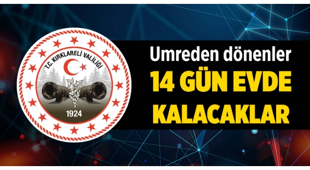 Kırklareli Valiliği, 'Umre İbadetinden Dönen Vatandaşlara Uygulanacak Tedbirler' konusunda açıklama yaptı.