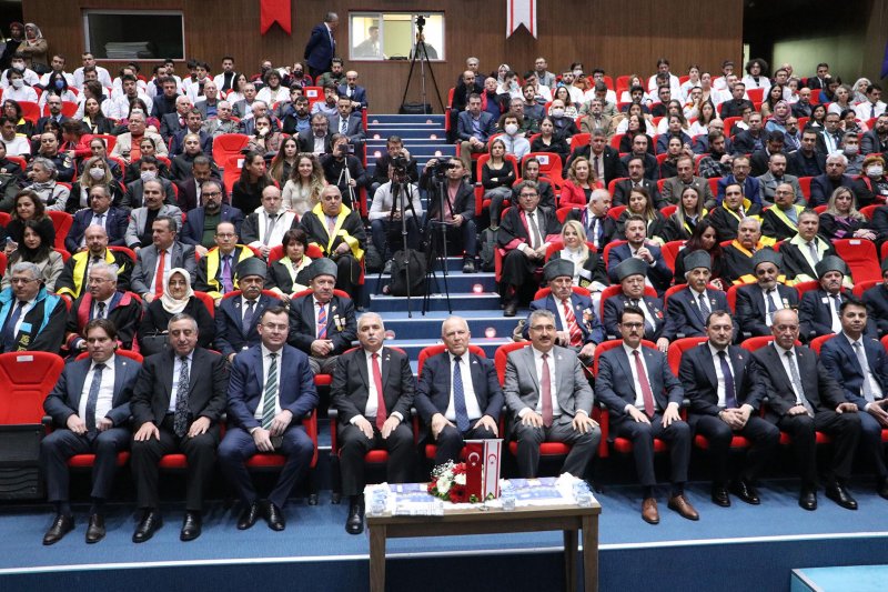 Töre, konferansta KKTC'nin kuruluşunu ve bugüne kadar ülkede yaşananları anlattı. (DHA)