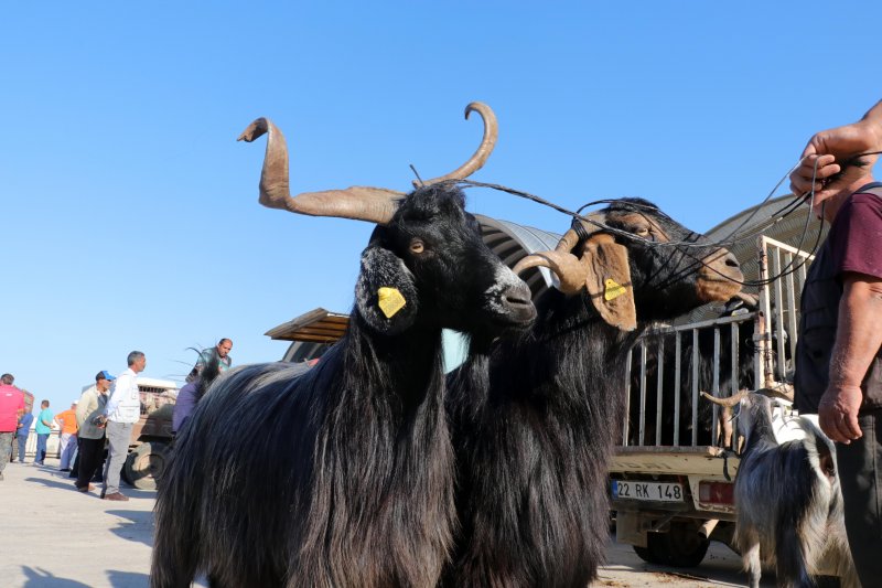 Edirne'nin Keşan ilçesi Ticaret Borsası Canlı Hayvan Satış Şubesi'nde kurulan kurban pazarında, bayram hareketliliği arttı. Büyükbaş hayvanların fiyatını pahalı bulan alıcılar, hem fiyatı uygun hem de eti daha lezzetli ve sağlıklı olan burma boynuzlu keçiye yöneldi.