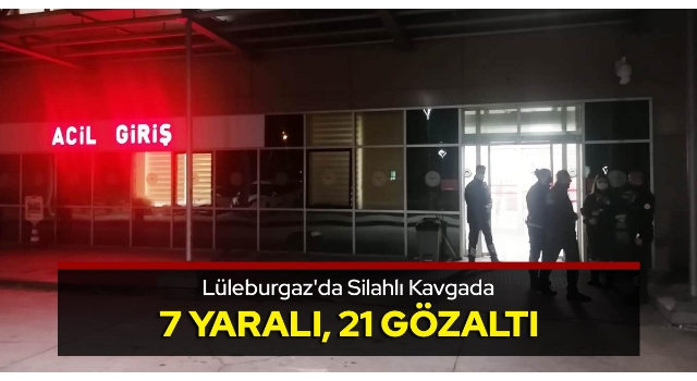 Kırklareli'nin Lüleburgaz ilçesinde, bir eğlence mekanında çıkan ve daha sonra hastanede devam eden silahlı kavgada polis ve sağlık çalışanın da aralarında olduğu 7 kişi yaralandı. Olayla ilgili 21 kişi gözaltına alındı.