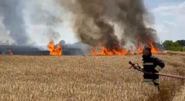 Karaiğdemir ile Evrenbey Mahalleleri hasattı beklenen 50 dönümlük ekili buğday tarlasında bugün öğlen saatlerinde henüz belli olmayan nedenden dolayı yangın çıktı.