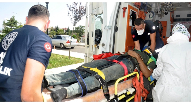 Tekirdağ'ın Malkara ilçesinde, yol yapım inşaatında çalışan Abdülmelik Topkaya (23), 8 metre yüksekliğindeki iskeleden düşerek yaralandı.