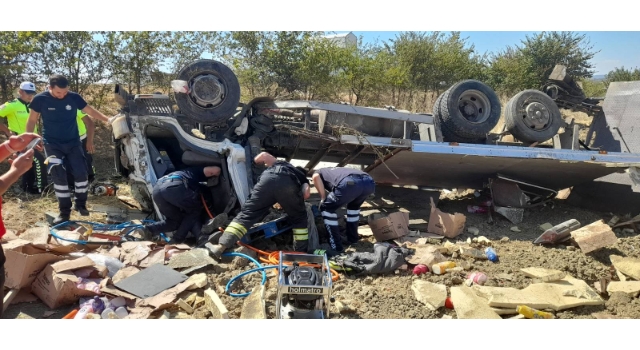 Malkara'da kamyon takla attı, sürücü yaralandı