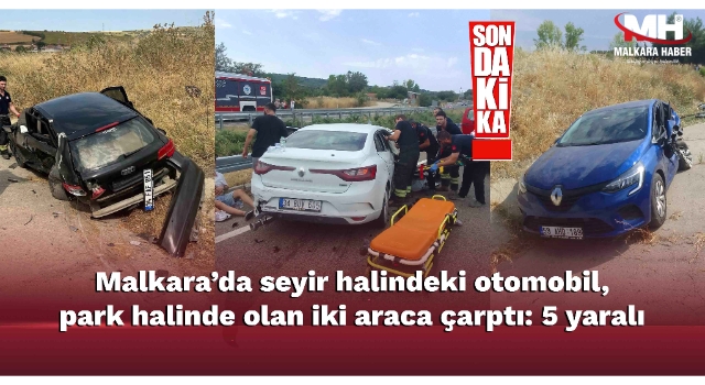 Malkara'da seyir halindeki otomobil, park halinde olan iki araca çarptı: 5 yaralı