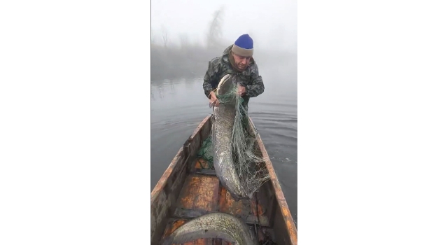 Edirne'nin Meriç ilçesindeki Meriç Nehri’nde ağlara takılan dev yayın balıkları görenleri şaşırttı.