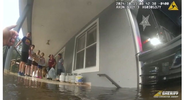 Milton Kasırgası nedeniyle evlerinde mahsur kalan aileyi polis kurtardı