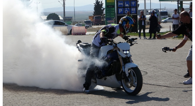 Motosiklet festivalinde akrobasisi gösterisi ilgiyle izlendi