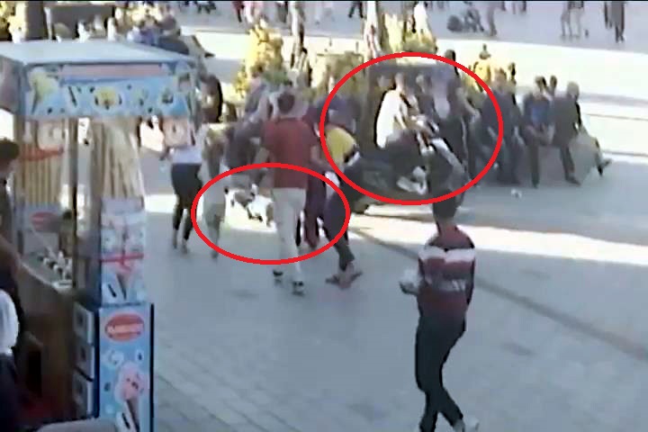 Esenyurt'ta araç trafiğine kapalı meydanda motosikletle giden bir kişi, annesinin yanında yürüyen çocuğa çarparak ağır yaralanmasına neden oldu. Kaza anı, güvenlik kamerası ile kaydedildi.