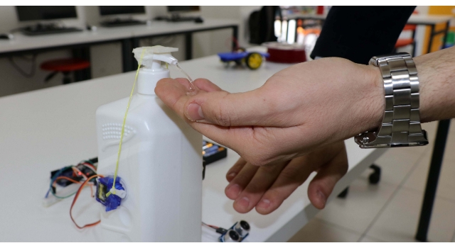 Öğrencilerin tasarladığı 'sensörlü dezenfektan' cihazı ilgi gördü