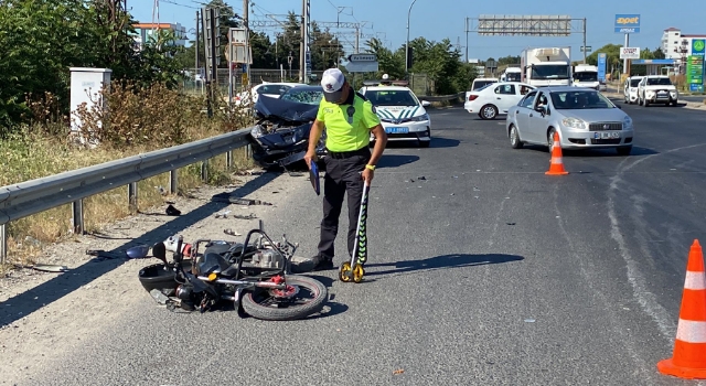 Tekirdağ'ın Ergene ilçesinde, otomobil ile çarpışan motosikletin sürücüsü ağır yaralandı.