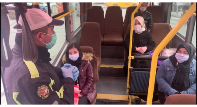 Polis, ekip araçlarından vatandaşları uyarırken, banka ve bankamatik önünde sıra oluşturan vatandaşlar sosyal mesafeyi korumaları yönünde uyarılıyor. Sokağa çıkma yasağı bulunan 65 yaş üstü vatandaşların ise işlemleri evlerine gidilerek yapılıyor. Trafik polisleri de minibüs ve otobüslerin doluluk oranını kontrol ederek, vatandaşları sosyal mesafeyi korumaları yönünde uyarıyor.