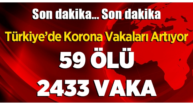 Sağlık Bakanı Fahrettin Koca, Türkiye'deki en son korona virüsü bilançosunu paylaştı. Koca'nın açıkladığı sayılara göre 59 hasta korona nedeniyle hayatını kaybederken vaka sayısı da 2 bin 433'e yükseldi.