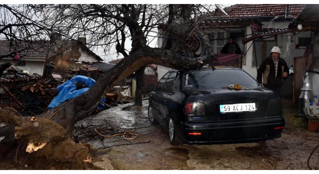 Tekirdağ’ın Şarköy ilçesinde yağmur ve ardından etkili olan fırtınada ağaçlar, telefon direkleri devrildi, çatılar uçtu.