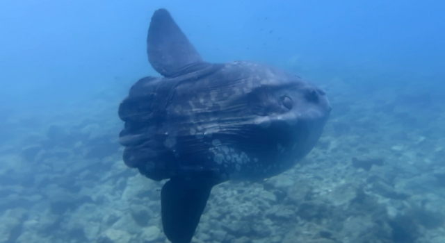 Bir süre dalgıçların yanında yüzen ay balığı, daha sonra gözden kayboldu.