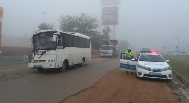 Edirne'de, sis nedeniyle görüş uzaklığının düştüğü yolda servis midibüsünün, öndeki servis midibüsüne çarptığı kazada, 20 kişi hafif yaralandı.