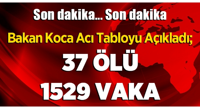 Sağlık Bakanı Fahrettin Koca, Türkiye'de görülen güncel korona virüsü vakalarını ve yaşanan can kaybını açıkladı. Yeni verilere göre korona vakası 1529'a yükseldi ölü sayısı ise 37 oldu.