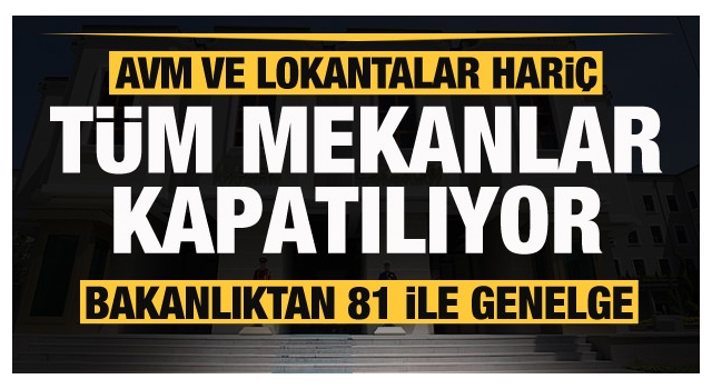 Genelge ile bugün saat 24.00 itibariyle tiyatro, sinema, gösteri merkezi, konser salonu, nişan/düğün salonu, çalgılı/müzikli lokanta/kafe, gazino, birahane, taverna, kahvehane, kıraathane, kafeterya, kır bahçesi, nargile salonu, nargile kafe, internet salonu, internet kafe, her türlü oyun salonları, her türlü kapalı çocuk oyun alanları (AVM ve lokanta içindekiler dahil), çay bahçesi, dernek lokalleri, lunapark, yüzme havuzu, hamam, sauna, kaplıca, masaj salonu, SPA ve spor merkezlerinin faaliyetleri geçici bir süreliğine durdurulacak