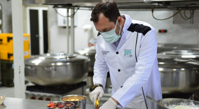 Tekirdağ’ın Süleymanpaşa Belediye Başkanı Cüneyt Yüksel, Aile, Çalışma ve Sosyal Hizmetler Tekirdağ İl Müdürlüğü’ne bağlı Sevgi Evleri’nde kalan çocuklar için önlüğü giyerek, elleri ile bayram tatlısı ve çiğbörek hazırladı.
