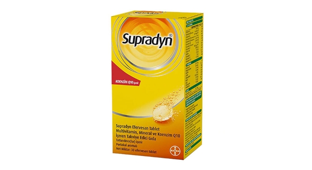 Günlük yaşam koşuşturması içinde birçok kişi kendini yorgun, bitkin ve düşük enerjili hissedebilir. Supradyn içerdiği vitamin ve minareller ile gün içinde kaybettiğiniz enerjiyi yeniden kazanmanıza yardımcı olur. Özelikle insan vücudunun enerji düşüklüğü yaşadığı dönemlerde, gıda takviyesi olarak güvenle kullanılabilir. Vücut sisteminin ihtiyaç duyduğu enerjiyi arttırarak, uzun süre dinç kalmanızı sağlar. İçerdiği vitamin ve minareller sürekli hareket halinde olan kişiler için tam bir enerji kaynağıdır. İlaç gurubunda yer almayan supradyn gıda takviyesi olarak kullanılan vitamin desteğidir. Yetişkinler tarafından günde 1 adet tok karnına kullanılabilir. Özellikle gün içinde yeterli beslenmeyen kişiler tarafından güvenle kullanılabilir.