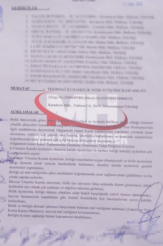 Yönetim Kurulu Başkanı Ergin Durgun’un Birliğin Malkara Şubesinin karşısında aynı iş koluna ait faaliyette bulunduğu ve rekabet etmeme yasağına aykırı davrandığı, Birliğin karşısında kendine dükkân açıp menfaat sağladığı sosyal medya aracılığı ile tüm üyelerimiz görüp bizlerle paylaşıp tepki göstermiş olmasından dolayı Mevcut Yönetimin değişmesi gerektiği konusunda böyle bir talep oluşmuştur.